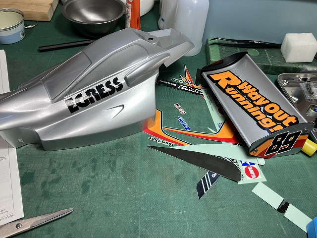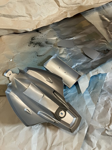 ○ボディ制作 ほとんど写真撮ってなかった。 ウイングが、ぶ厚くてカットするのがとても大変。曲線ばさみでも苦戦。指は痛いし、精密なカットも出来ないしで、ひたすら紙やすりで形状を整えてた。 そもそも左利きに右用はさみは使いにくいんじゃー! ボディカットと仕上げに3hくらいかかったか? ボディ色は純正指定のPS-41ブライトシルバーにした。 最初、間違ってPS-12シルバー買っちゃったんだけど、やはり指定色でやりたかったので。なおPS-48サテンシルバーも在庫で持ってた。 ほかにもPS-36フロストシルバーってのもあるようだ。 シルバー系で4種類。そんなに色合いが違うのか? |