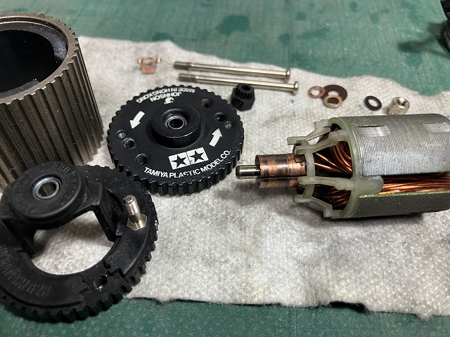 ○モーターメンテナンス 搭載するモーターの選定はかなり悩んだ結果、せっかくなので当時最高峰のダイナテック02Hに決定。 ほかの候補としては 新規ブラシレス17.5T → ESC+モーターだと財布が軽いので断念 在庫GTチューン → M03に積むので、使いたくない 在庫スーパーストックTypeS → これでもいいんだけど、過激な頃の23Tはメンテ頻度が高くて面倒... |