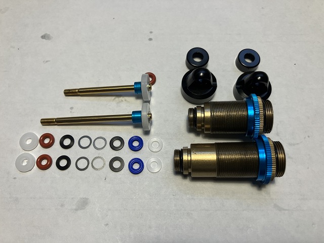○ビッグボアARダンパー組み立て 組み方を忘れそうなので記録をとっておく。 Xリングが4個だけあったので、内側の1個のみ赤リングから変更しておいた。 ピストンは前後とも1.7mm ストローク制限のスペーサーはフロント3mm。リヤ4mm入れておいた。 |