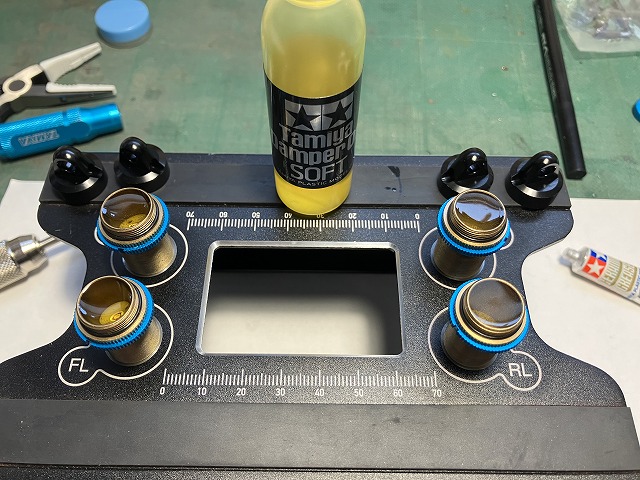 ○ビッグボアARダンパー組み立て つづき オイルもすぐ忘れるので記録。 タミヤの黄色#400 エアレーションダンパー組むの久しぶりすぎてよくわかんね。 ちゃんと組めてる? |